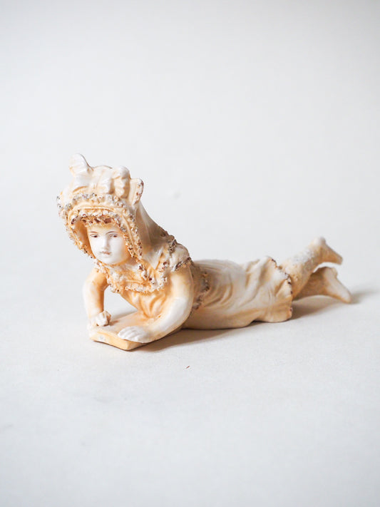Biscuit - Statuette ancienne – Petite fille au chapeau – XIXᵉ siècle