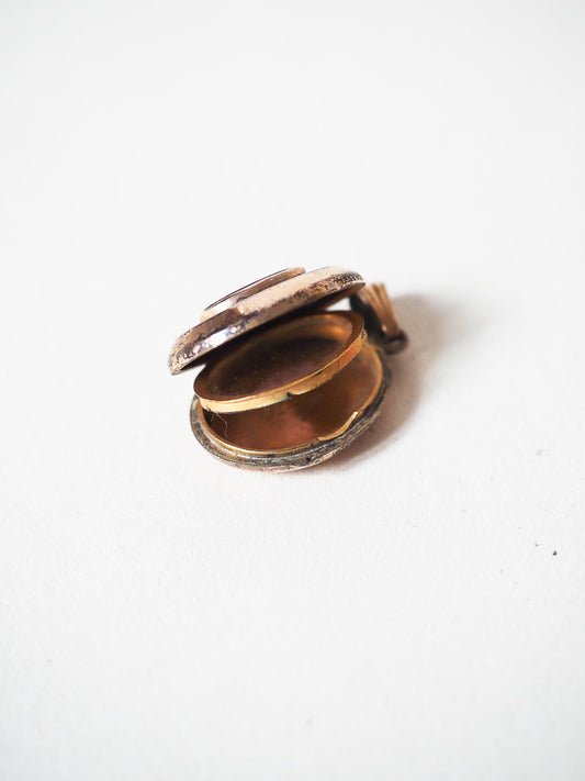 Médaillon religieux ancien qui s'ouvre pour photo – Plaqué or – Cabochon violet – Objet secret