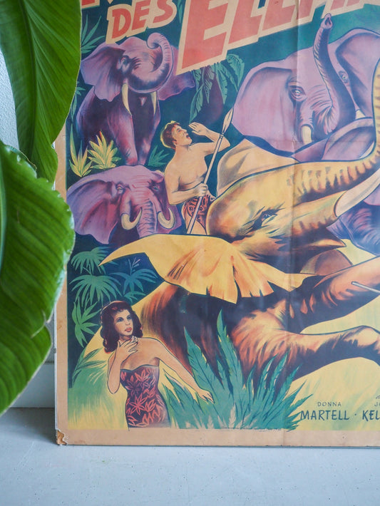 Affiche de cinéma ancienne La ruée sauvage des élephants