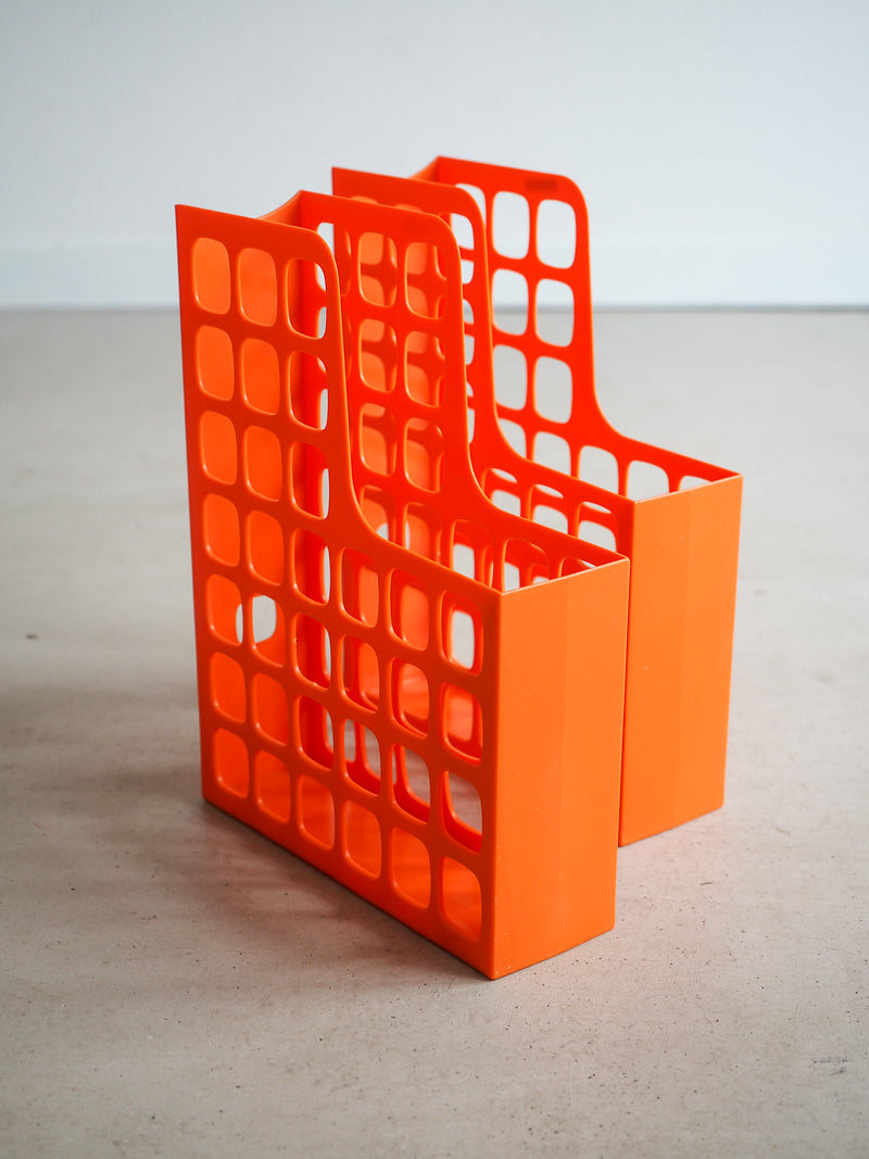 Du pure 70s avec ces range-documents ou range-revues Boxer en plastique orange de la marque Esselte et leur motif carré arrondi. Un classique à avoir sur son bureau pour tous les fans du vintage et des années 70.
