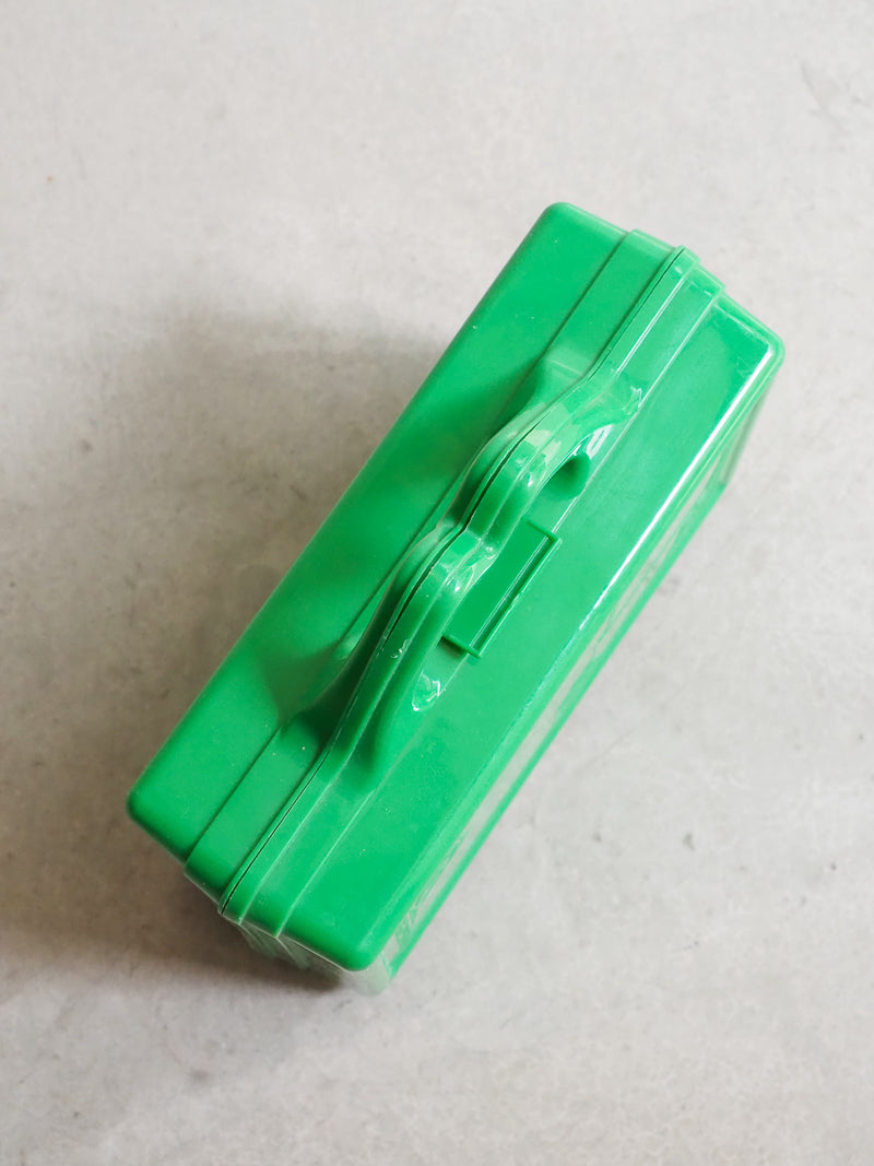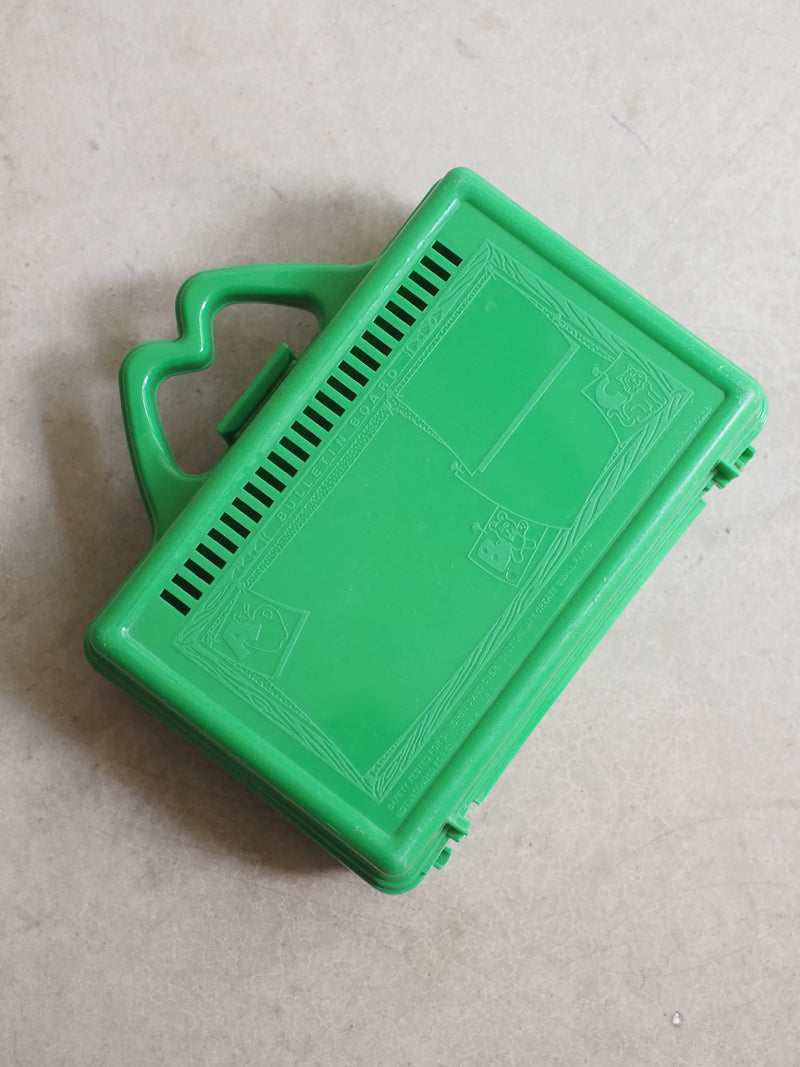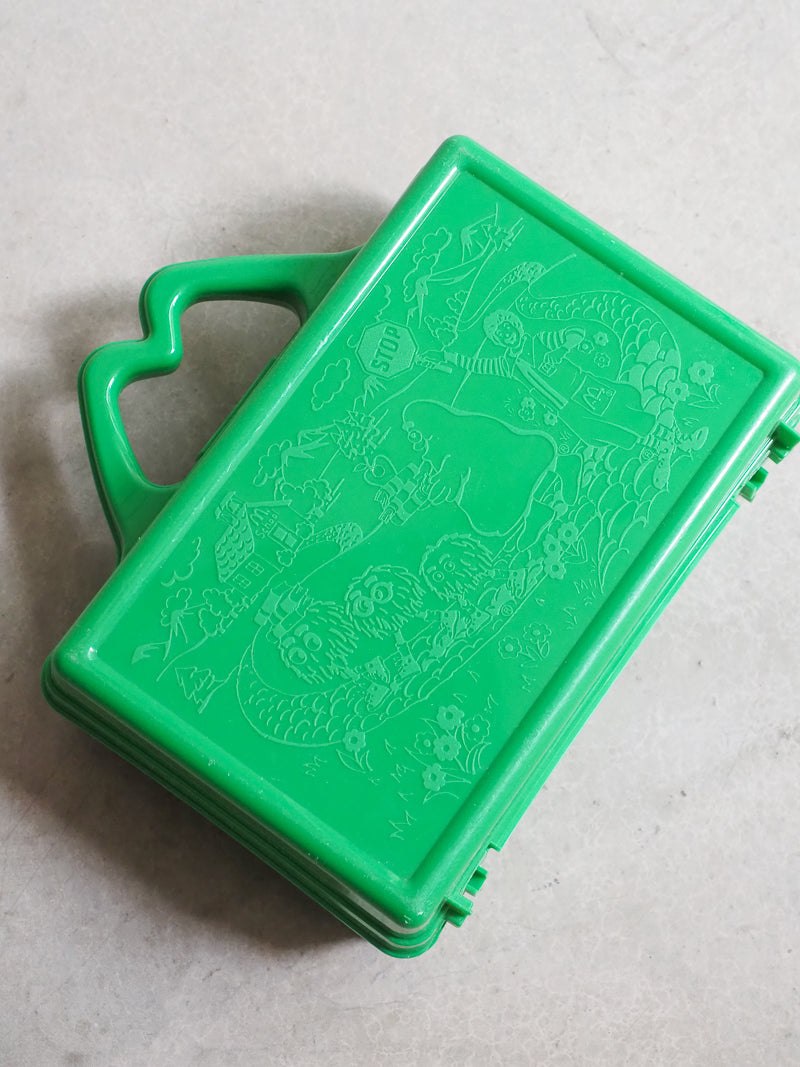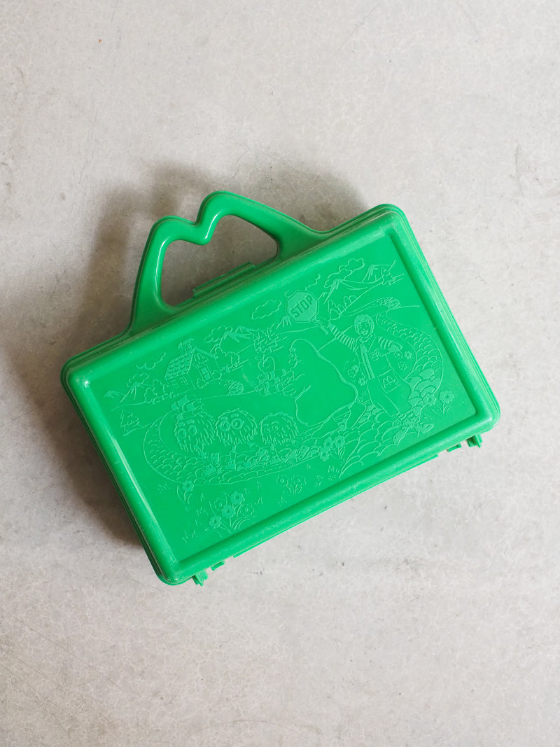 Boîte à goûter vintage en plastique vert des années 80, McDonald's. Décorée avec des personnages McDonald's, incluant Ronald McDonald, cette boîte est un véritable objet collector pour les nostalgiques de l'époque.