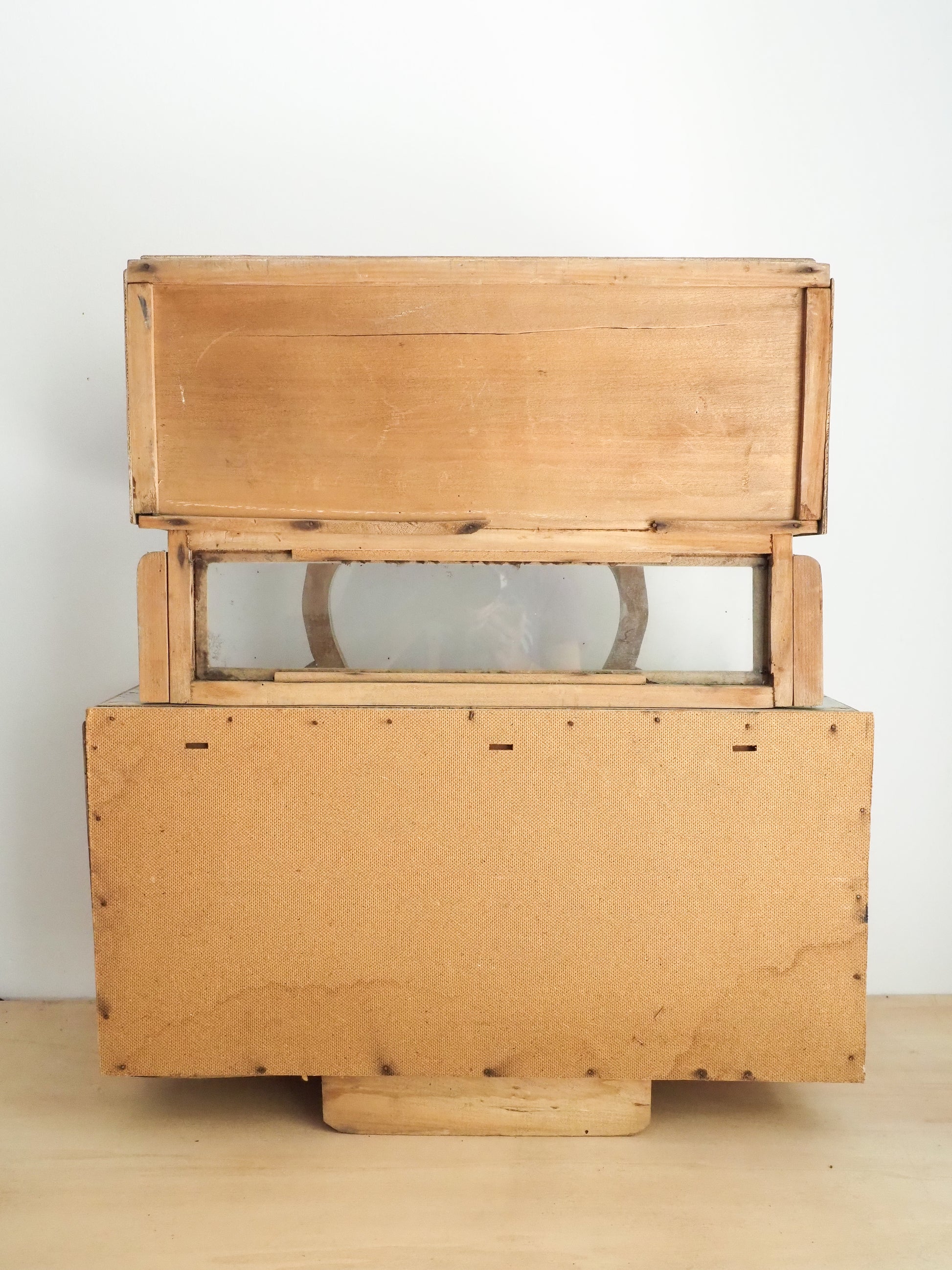 Composé de deux parties (haut et bas) séparées par une vitre centrale, ce meuble à restaurer est une belle base pour un projet de relooking : à repeindre selon vos envies pour l’harmoniser à l’univers de votre enfant.