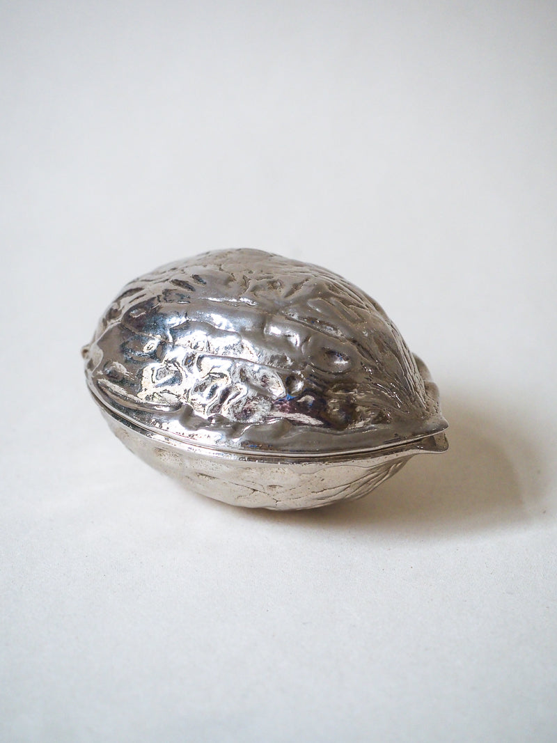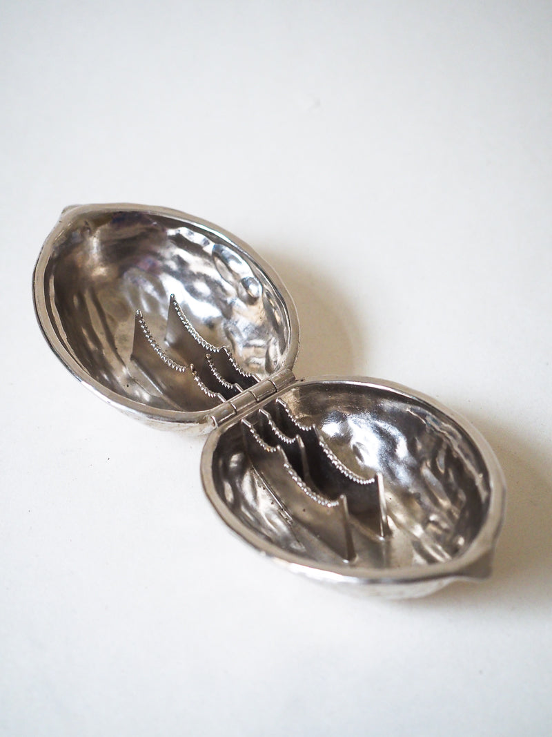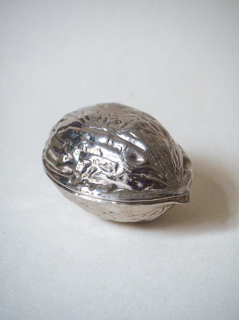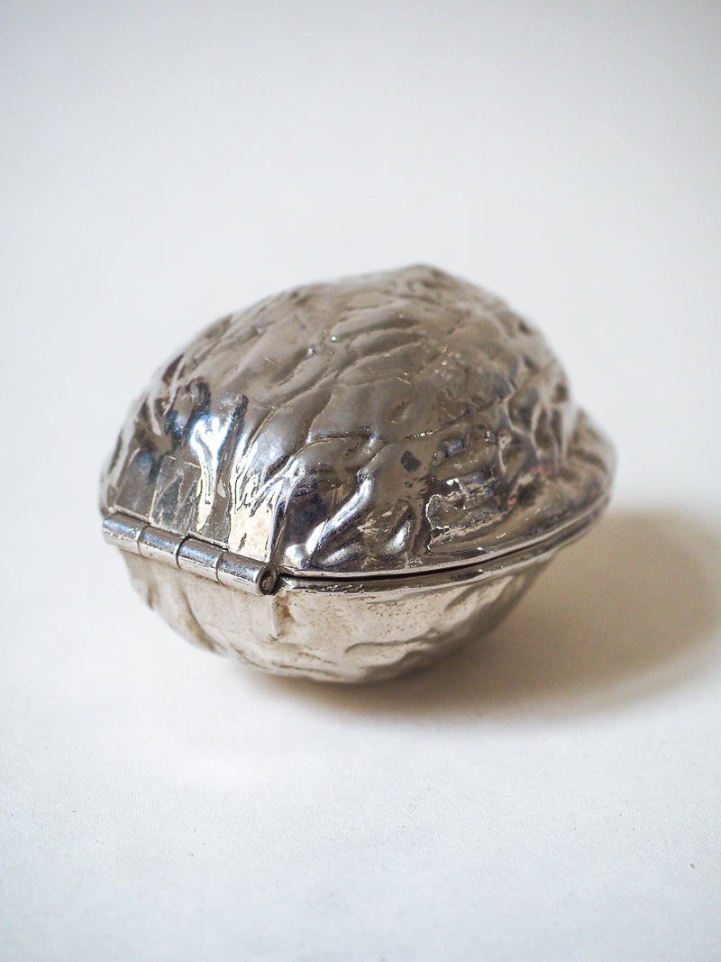 Magnifique casse-noix vintage en métal chromé, en forme de noix.