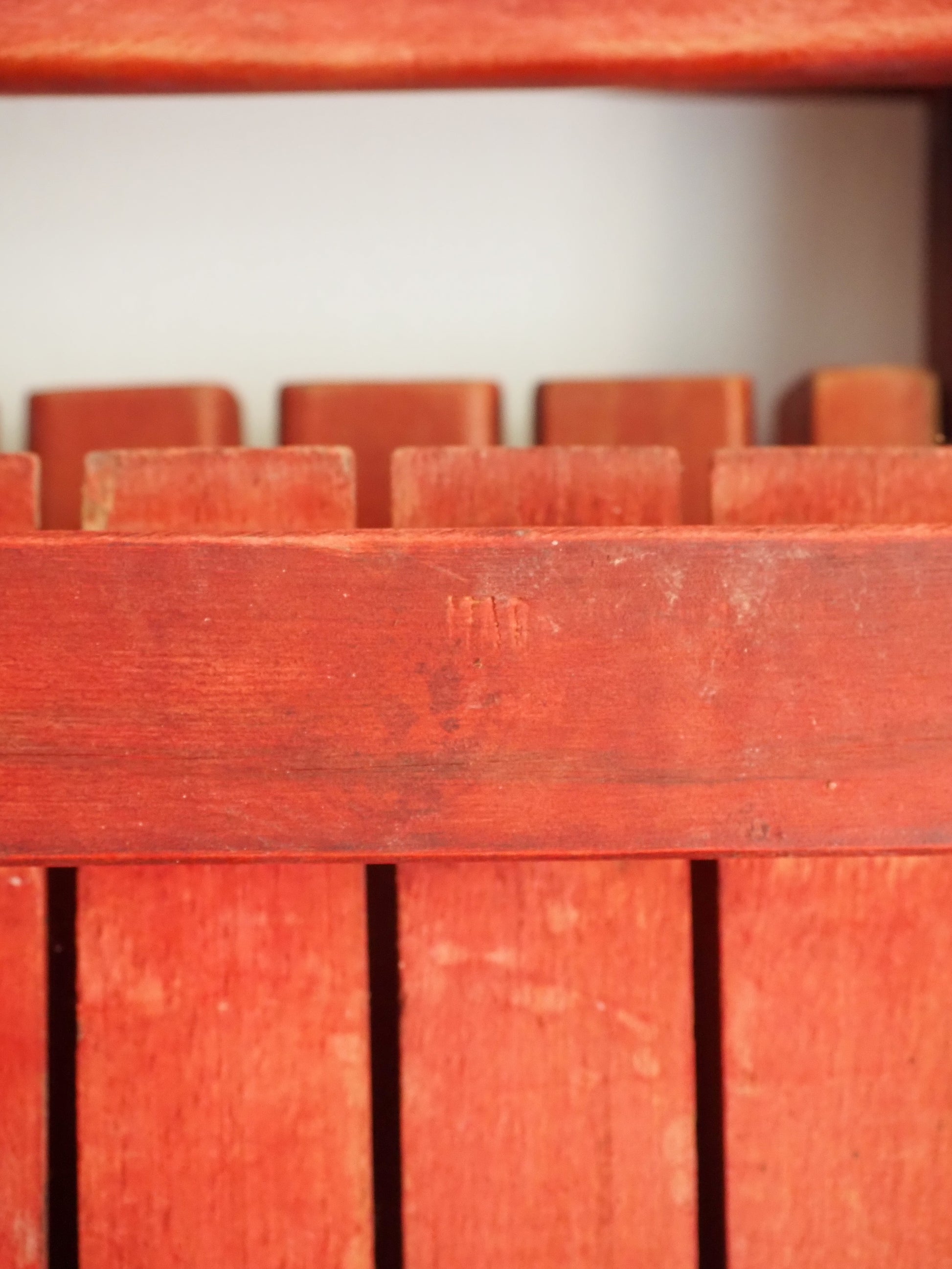 Matériau : Hêtre massif, teinté rouge (patine vintage visible, usure douce)