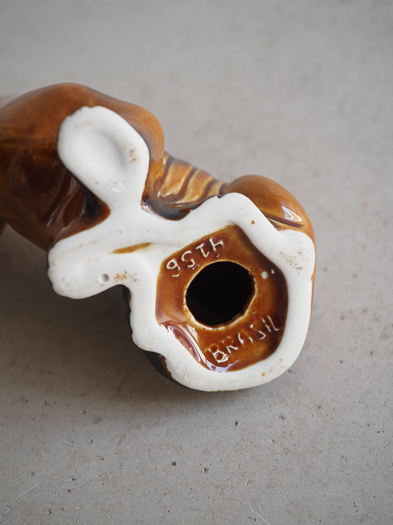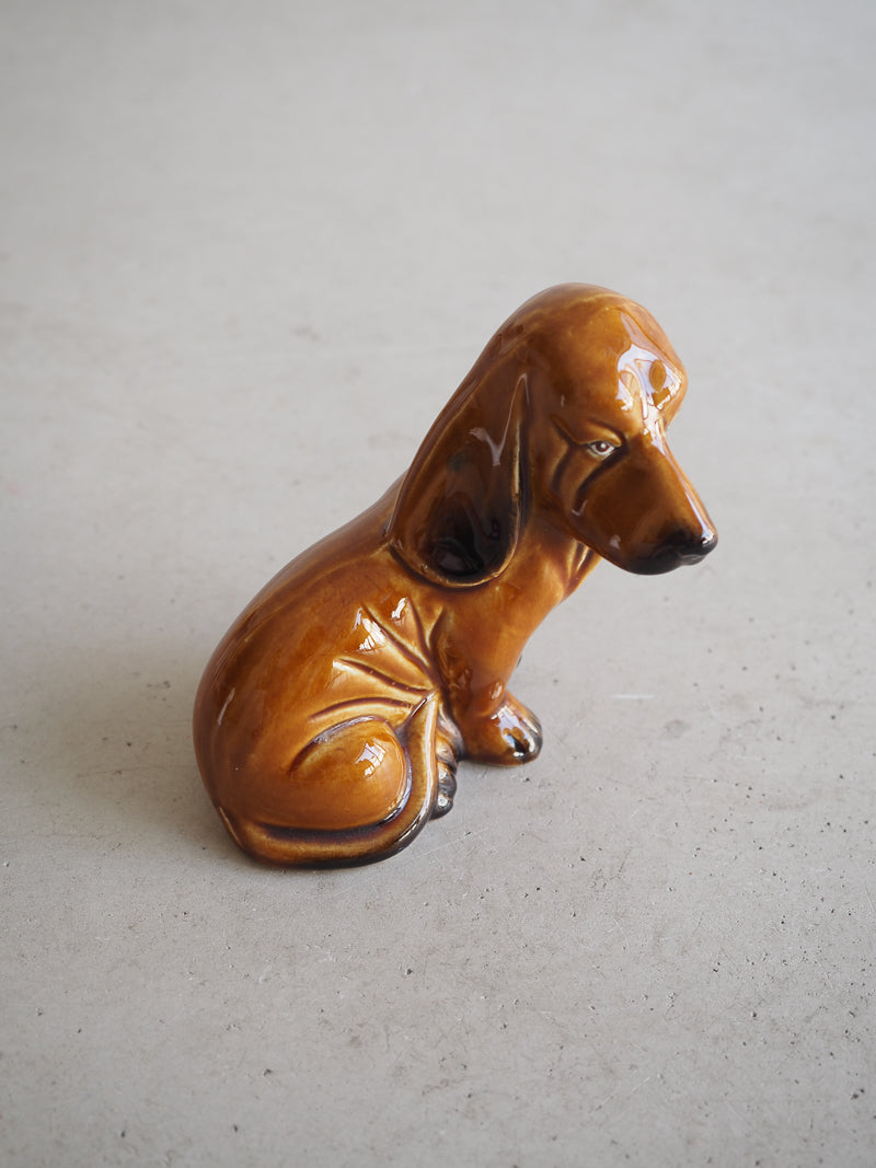 Bibelot chien marron en céramique numéroté Made in Brazil des années 70. Il représente peut-être un basset ou un cocker.