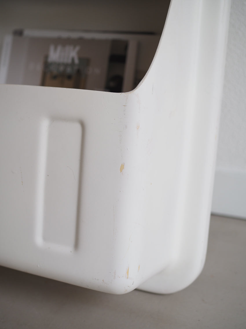 État : pas de casses, pas de manques mais divers petites rayures ou marques sur le plastique surtout sur les coins. Et des traces noires dans le fond de l'étagère du bas (pas visible une fois l'étagère installée). N'enlève rien à leur charme.