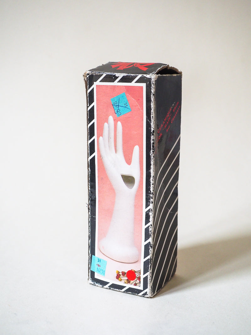 Joli et délicat bibelot des années 70, cette main en porcelaine se pose dans une salle bain ou dans une chambre pour y déposer ses bijoux le soir. Grâce à son ouverture elle peut également servir de petit vase ou soliflore.