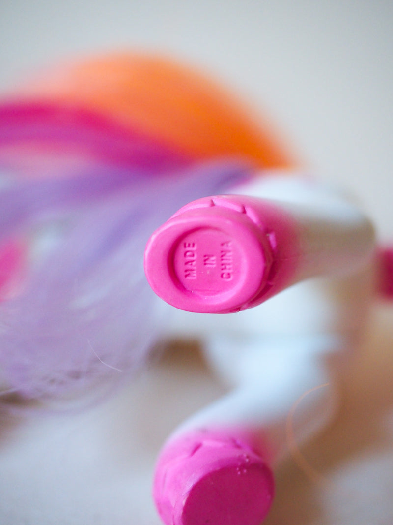 De petites marques légères (en cohérence avec âge vintage) peuvent subsister malgré un nettoyage méticuleux. Ce poney est particulièrement est très bon état.