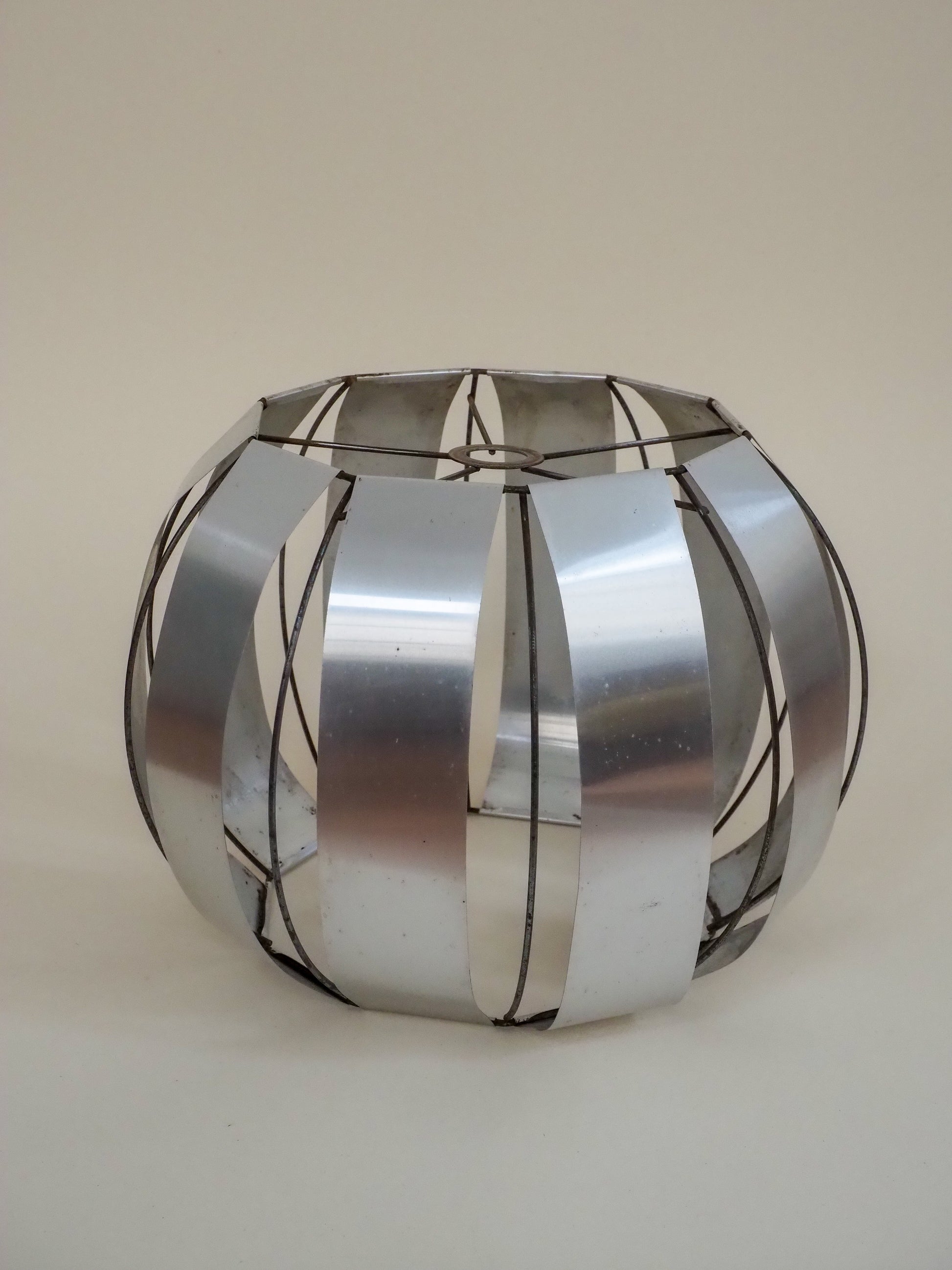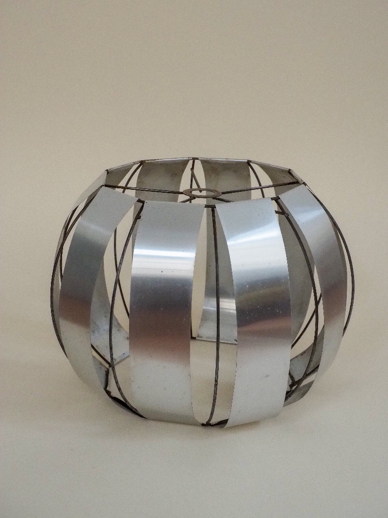 Ce plafonnier des années 70 combine un design épuré et une structure légère. Sa structure fine en métal est associée à des lamelles en aluminium.