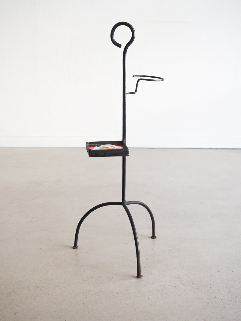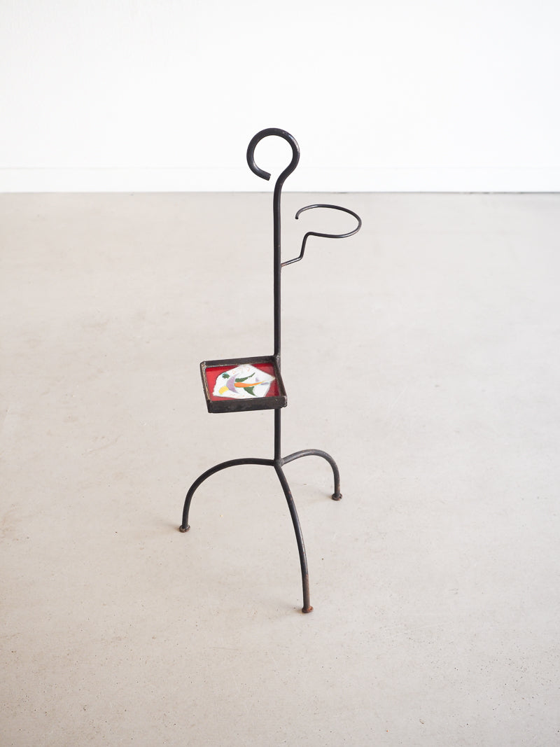 Ce porte-plante ou porte-cendrier vintage date des années 50. Fabriqué en métal, avec une structure tripode, il est orné d’un carreau en céramique décoré dans le style Vallauris, apportant une touche artistique et décoratif. Conçu pour accueillir un petit pot de fleur ou un cendrier cet objet est parfait pour compléter un coin lecture ou une décoration vintage.