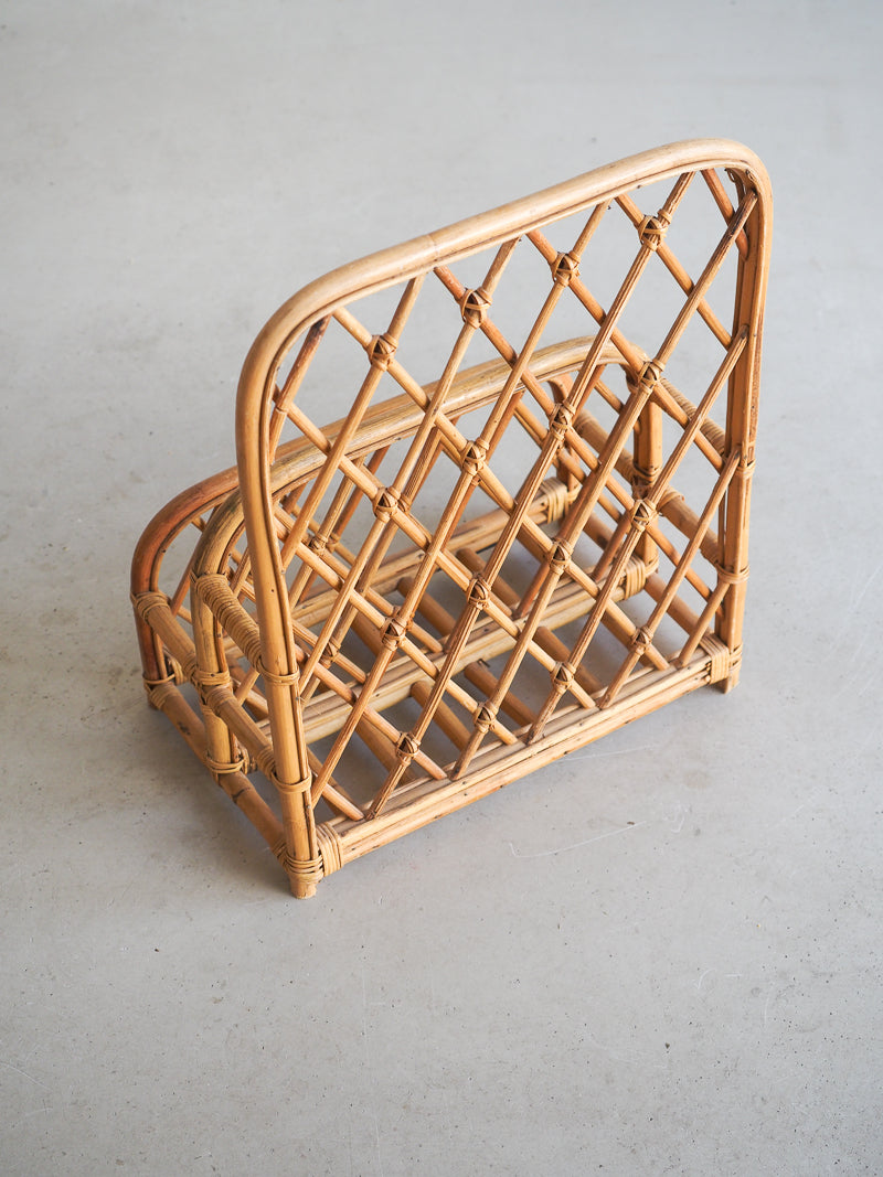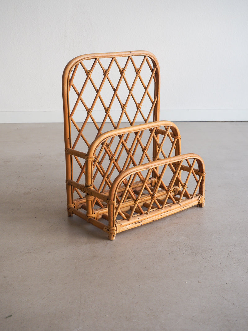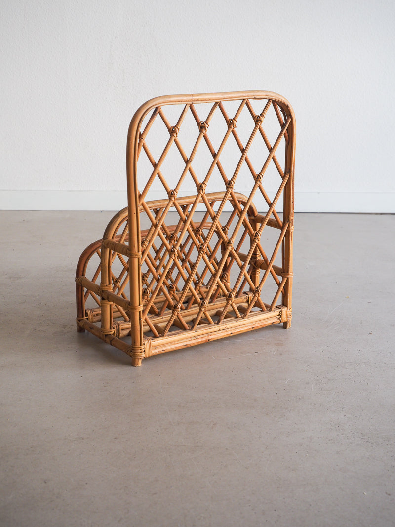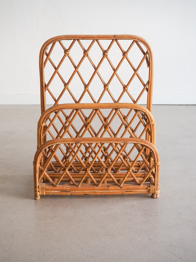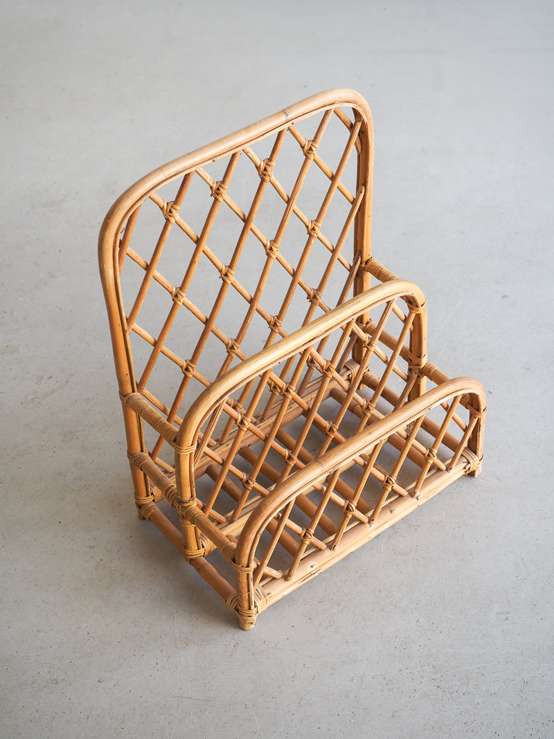 Ajoutez une touche rétro dans votre salon ou votre bureau avec ce porte-revues vintage en rotin. Doté de deux compartiments, il est conçu pour présenter vos livres et magazines de face, offrant à la fois un espace de rangement pratique et un bel objet décoratif. Idéal pour être posé sur un bureau, une commode ou tout autre meuble, ce porte-revues est fonctionnel. Sa structure légère et aérée en rotin tressé apporte une note chaleureuse à tout style de décoration, qu'il soit bohème, scandinave ou vintage.
