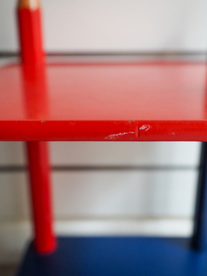 Table de chevet en forme de crayons, typique du design pop et coloré des années 80. Parfaite pour apporter une touche ludique et rétro à la décoration d'une chambre d’enfant, dans le style du designer Pierre Sala et style Memphis.